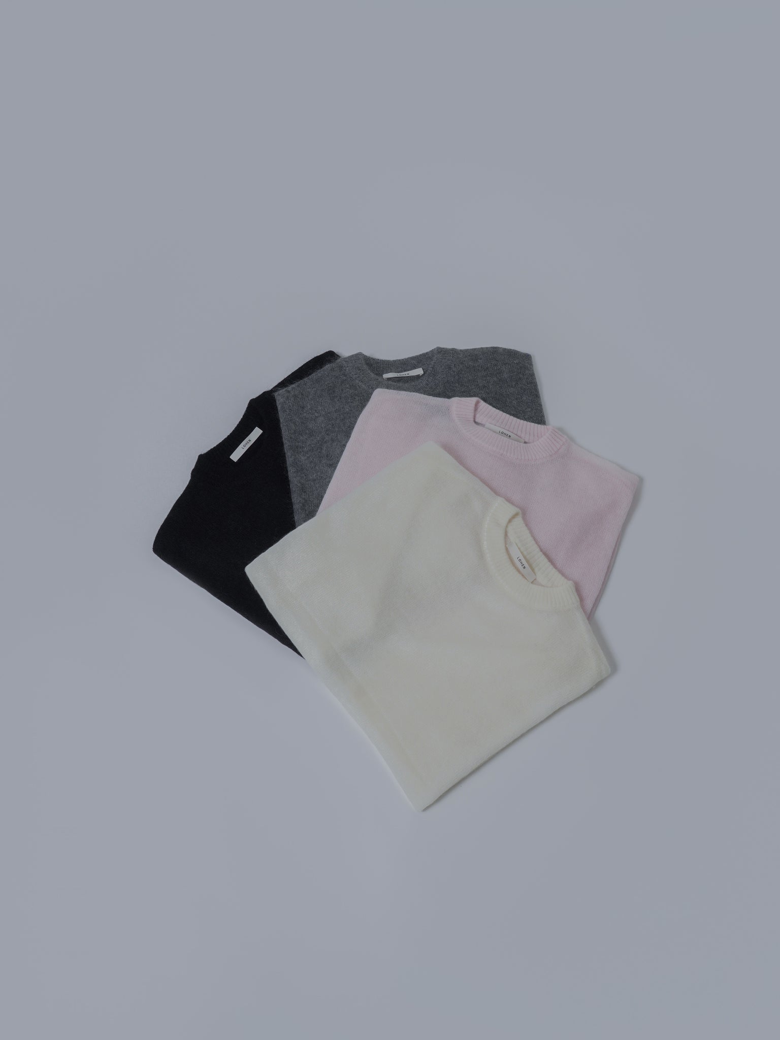 最高級原毛で柔らかく光沢も豊かなスーパーキッドモヘヤ混のヘアリーヤーンを使用しています。