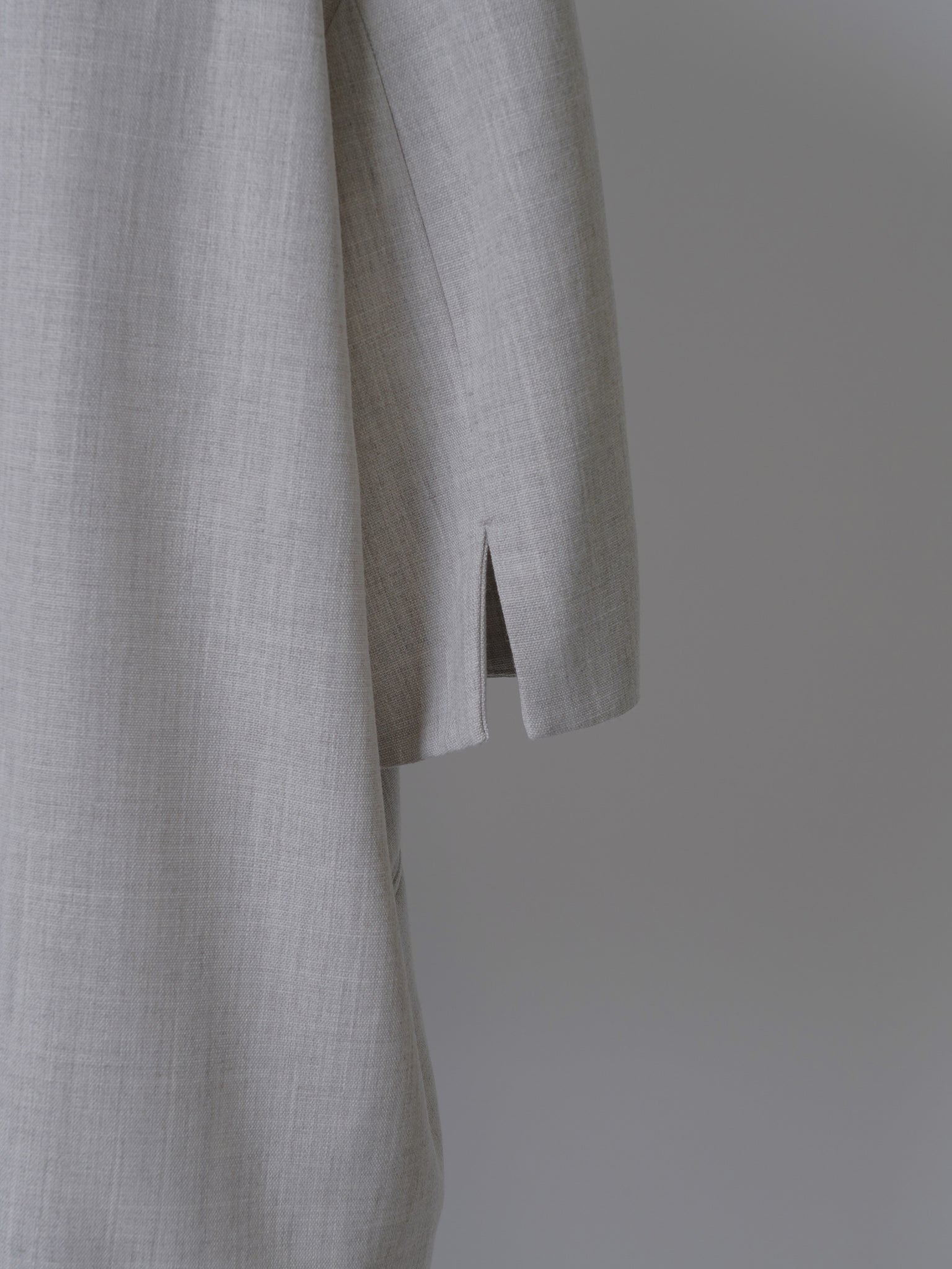 天然のリネンのような柔らかさとナチュラルな質感、太番手で織られた表情のあるキャンバス組織の素材です。シャリ感のあるサラッとしたタッチで、シーズン長く着用して頂けます。