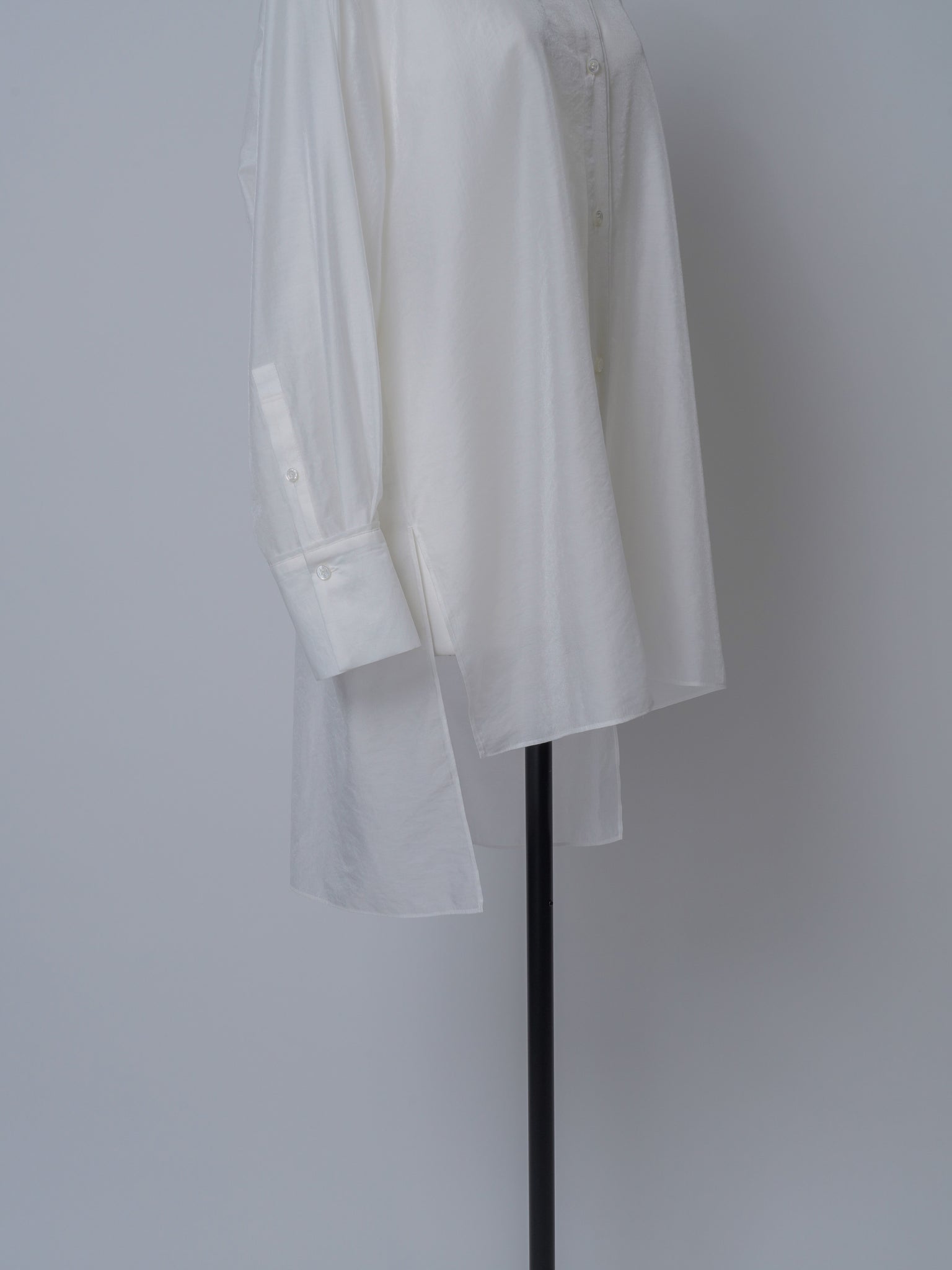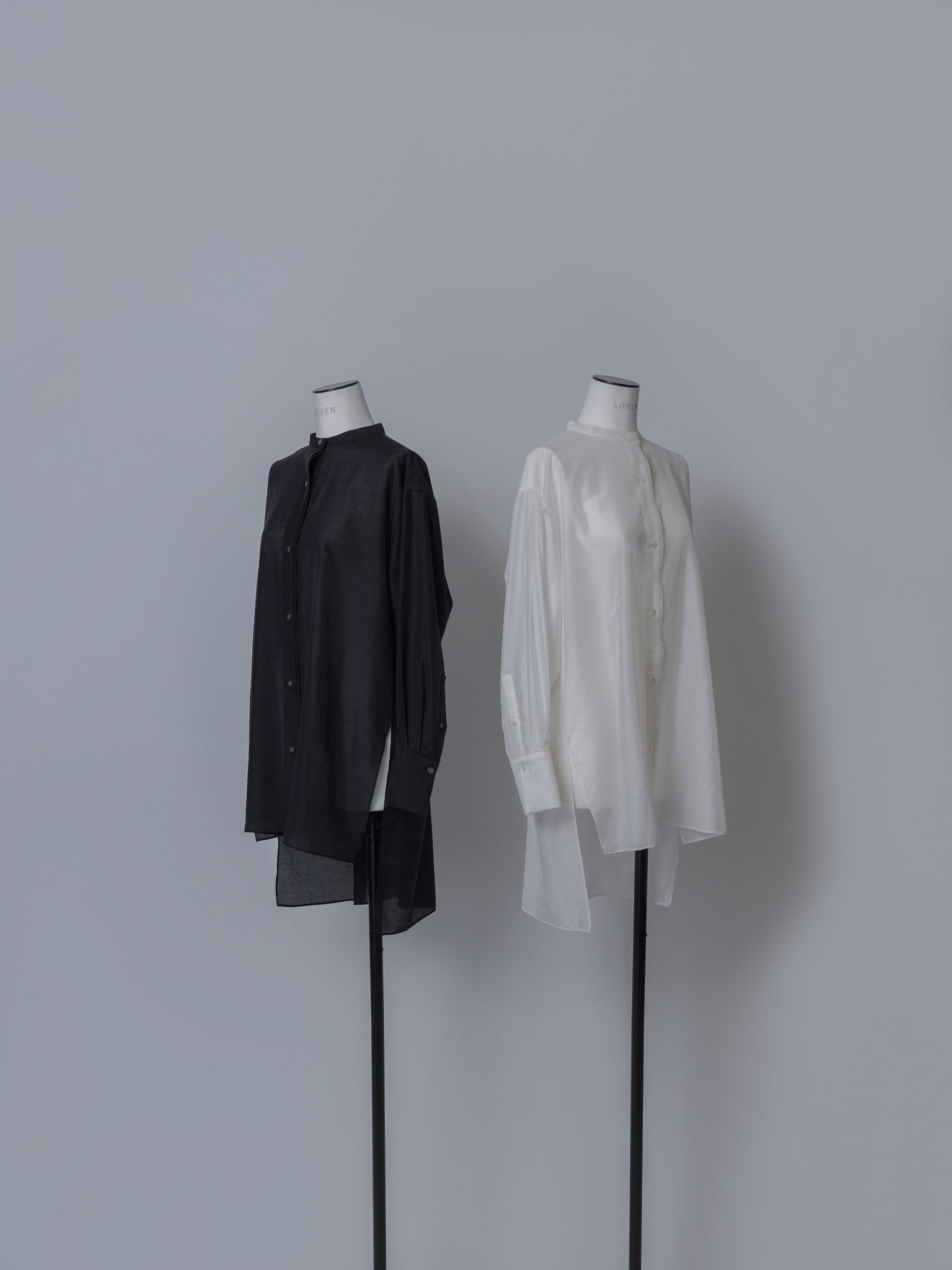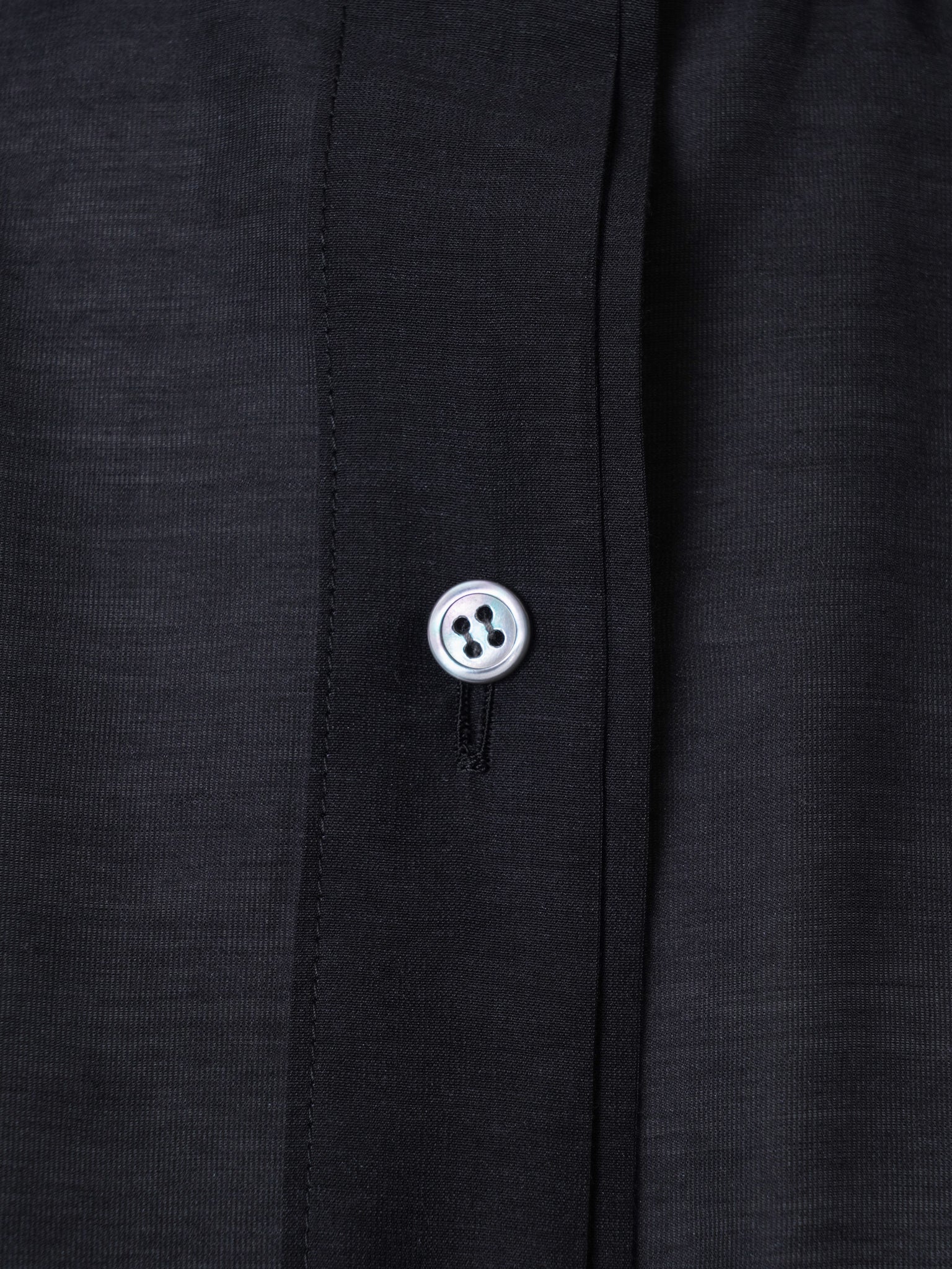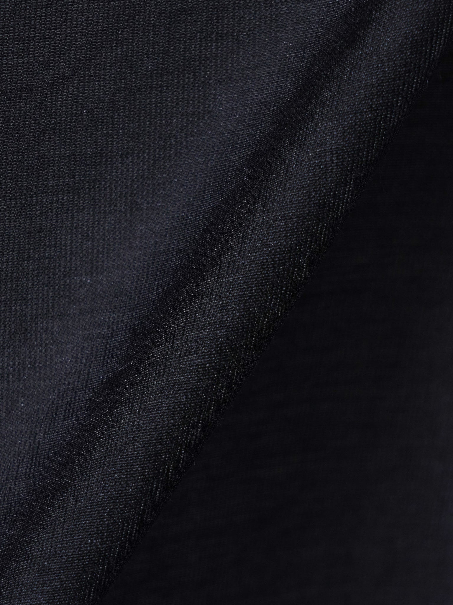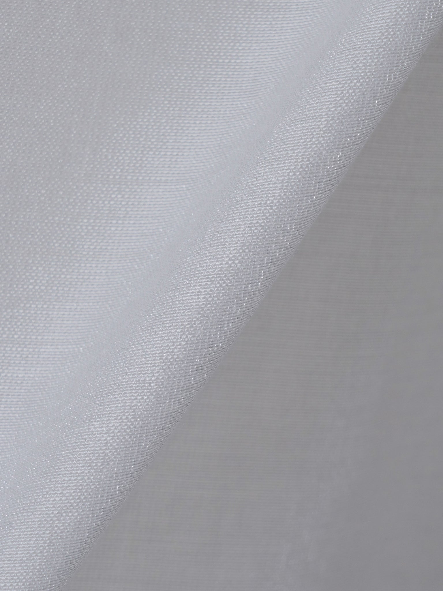 タテ糸に細番手のナイロン、ヨコ糸にキュプラシルクの混紡糸を使用した程良くハリがあり、シルクの上品な光沢が特徴の素材です。透け過ぎない程良いシアー感が上品な雰囲気を漂わせている生地です。