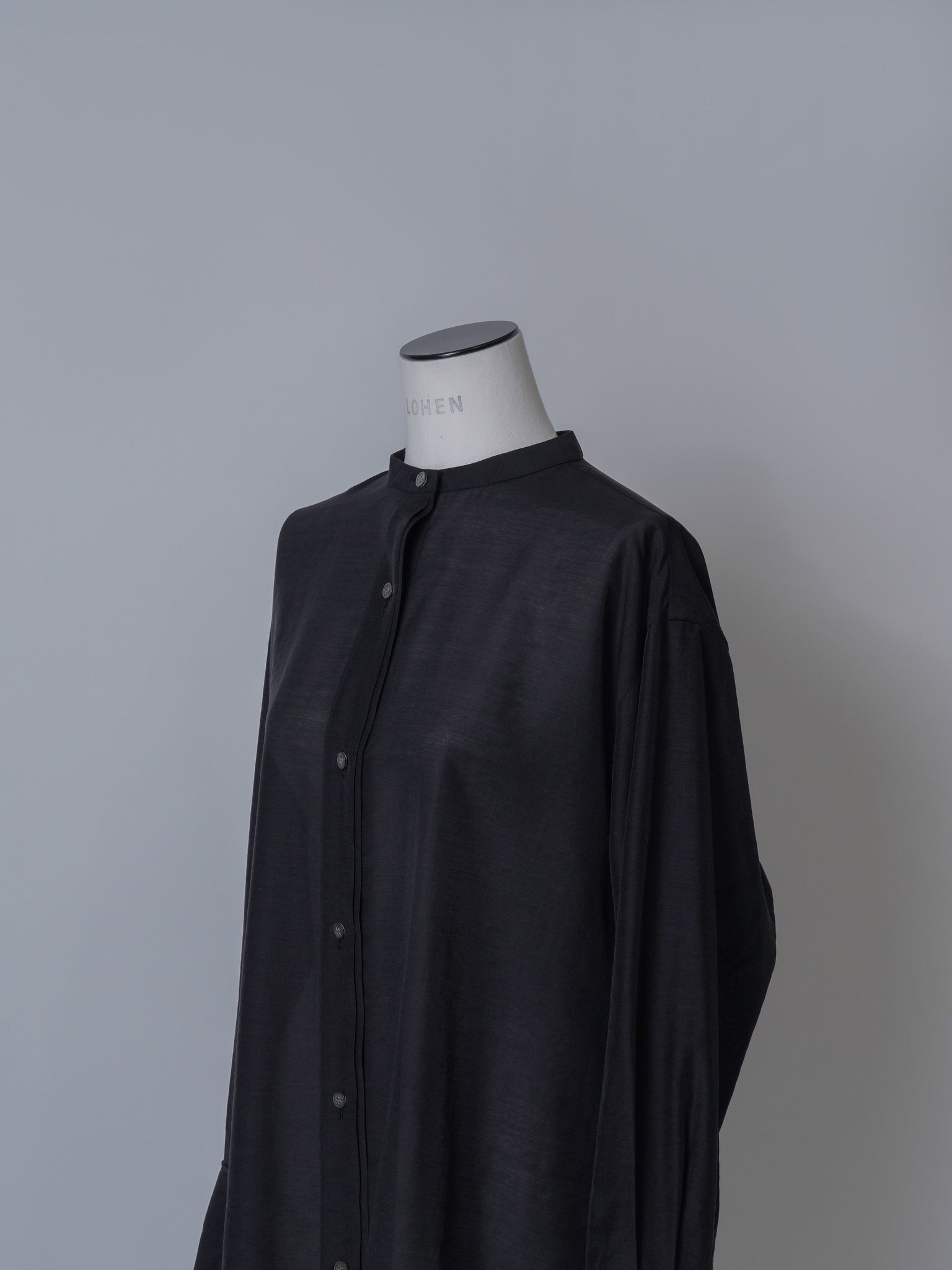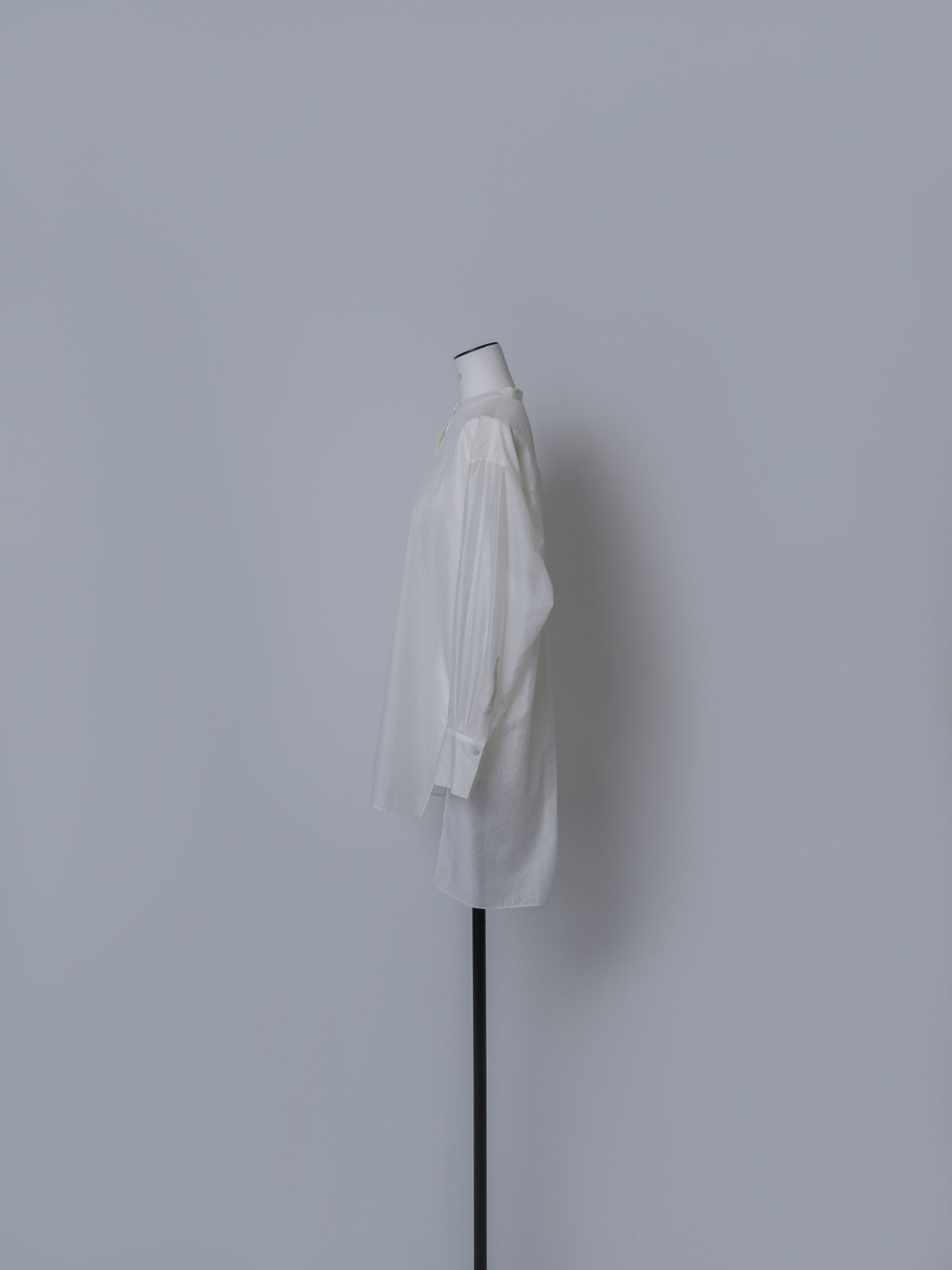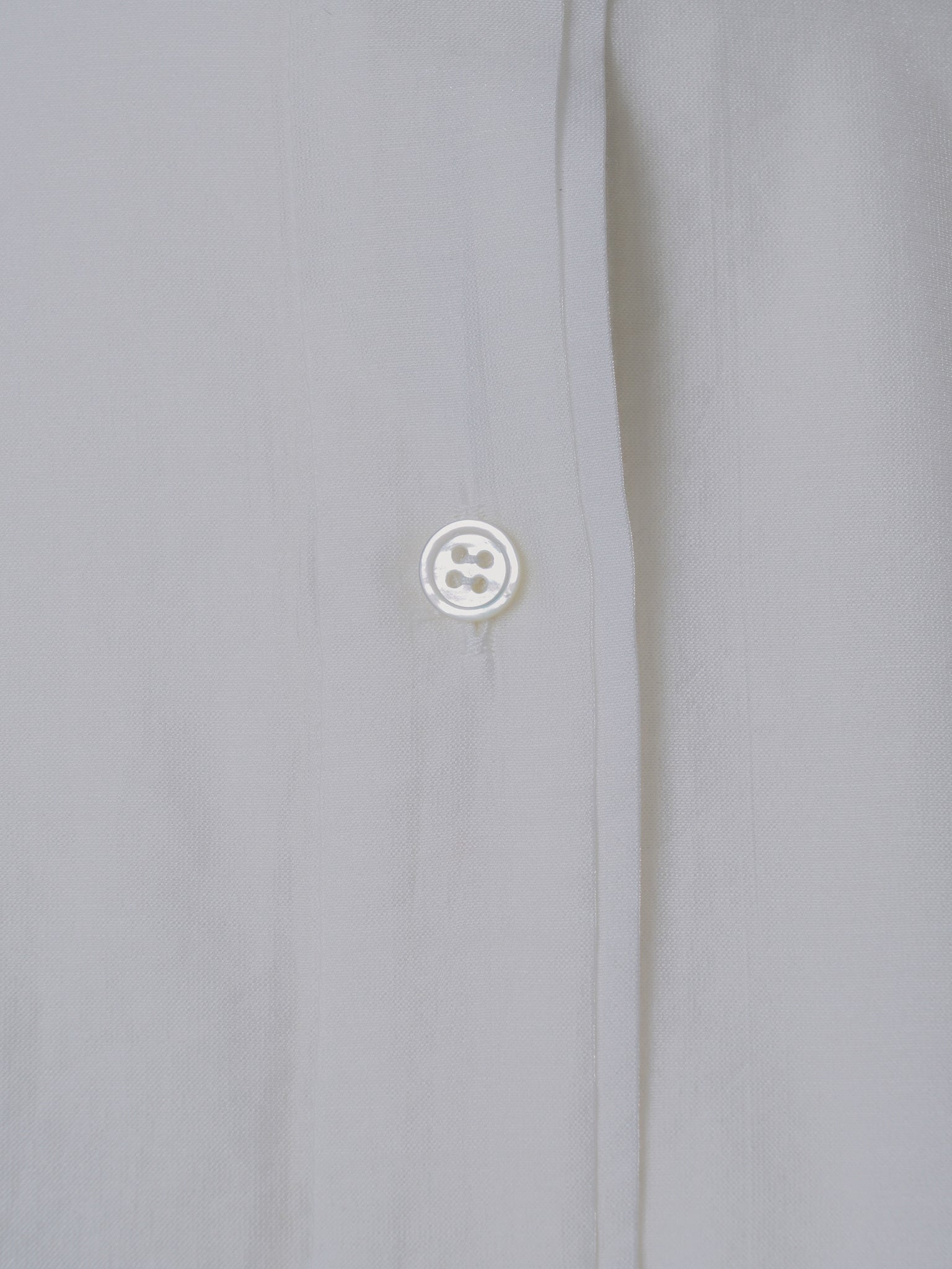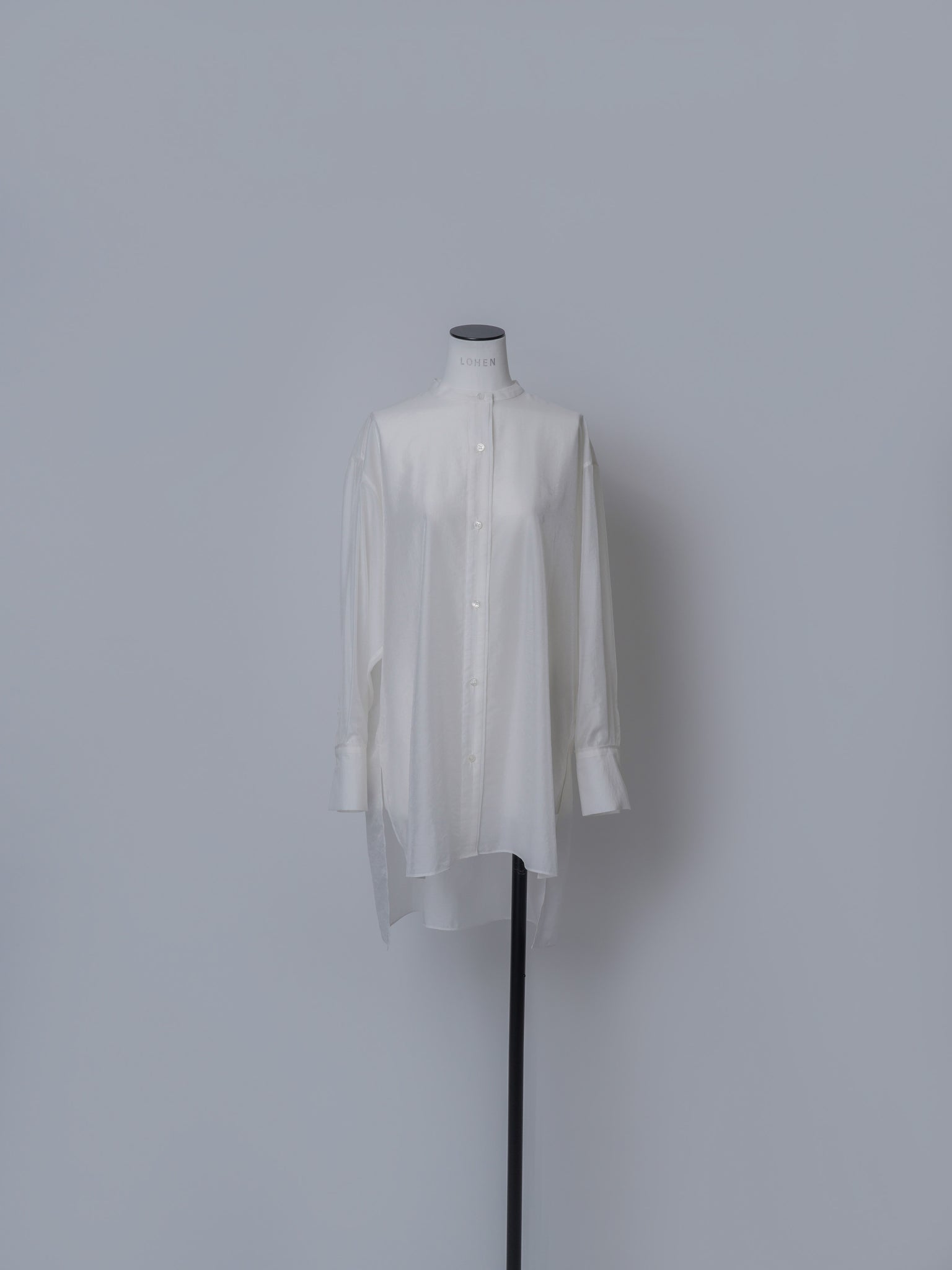 タテ糸に細番手のナイロン、ヨコ糸にキュプラシルクの混紡糸を使用した程良くハリがあり、シルクの上品な光沢が特徴の素材です。透け過ぎない程良いシアー感が上品な雰囲気を漂わせている生地です。