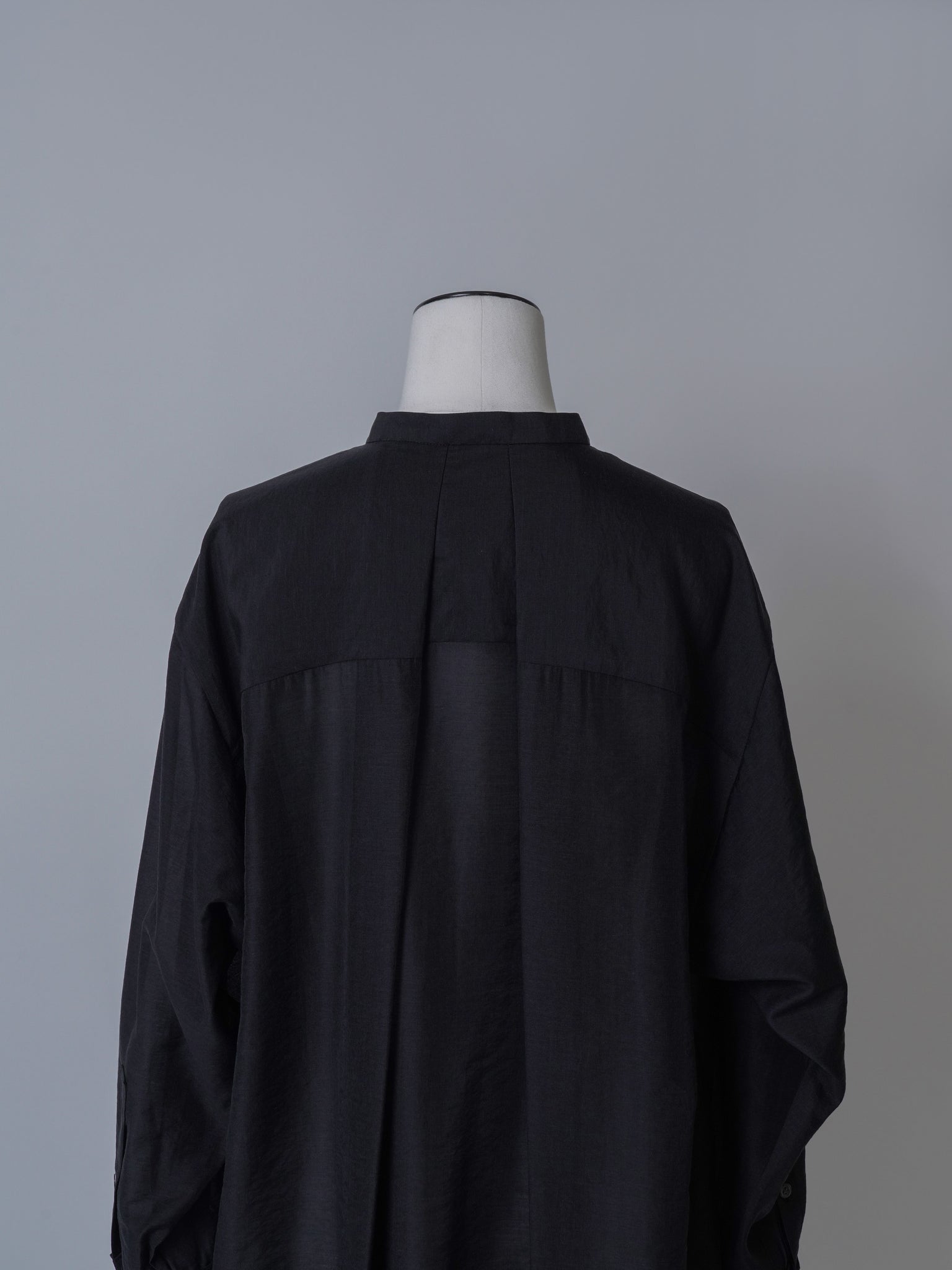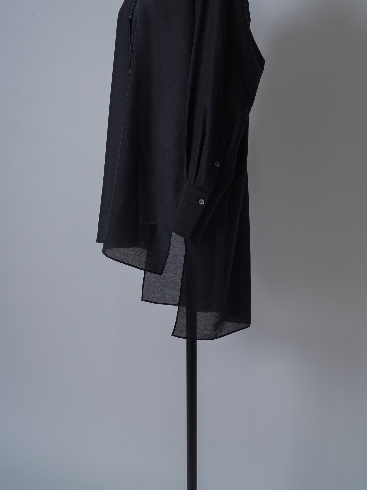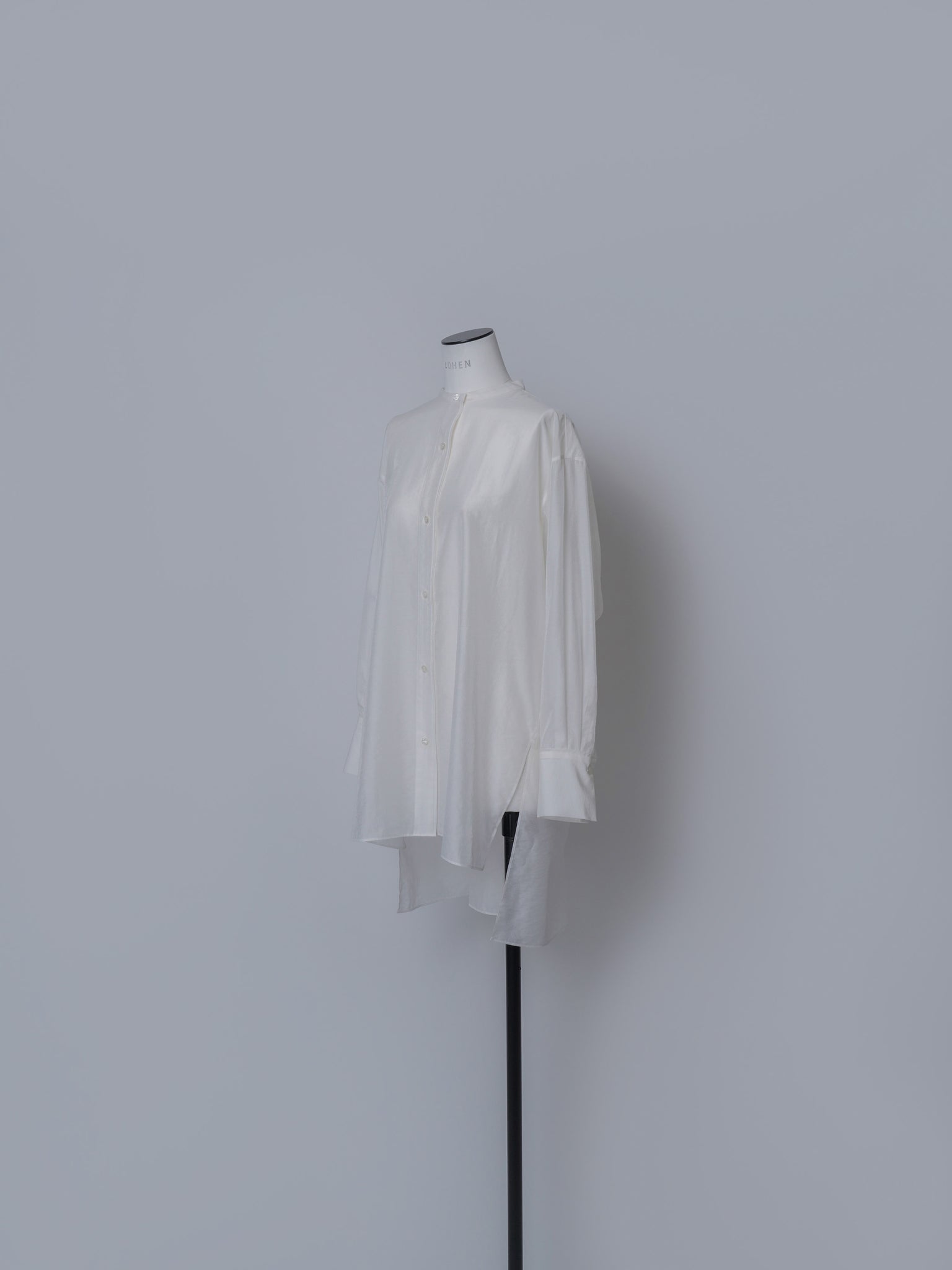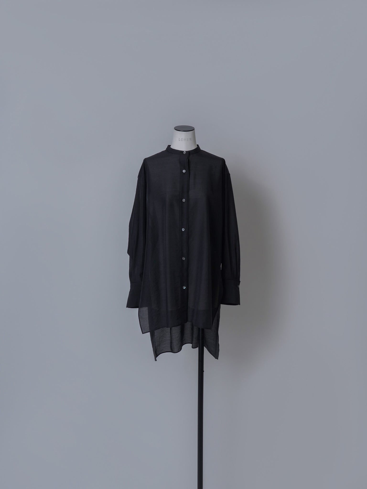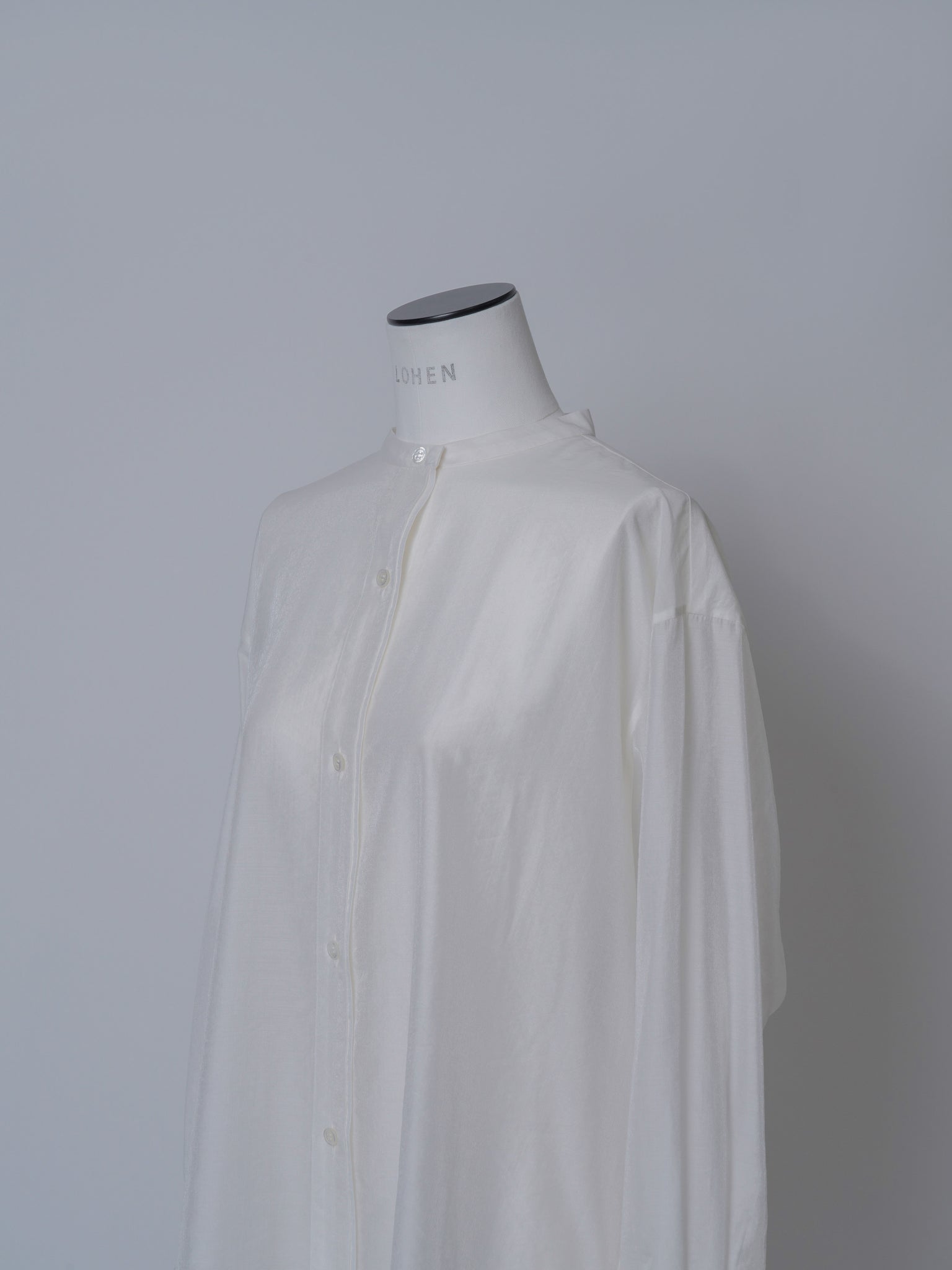 タテ糸に細番手のナイロン、ヨコ糸にキュプラシルクの混紡糸を使用した程良くハリがあり、シルクの上品な光沢が特徴の素材です。透け過ぎない程良いシアー感が上品な雰囲気を漂わせている生地です。