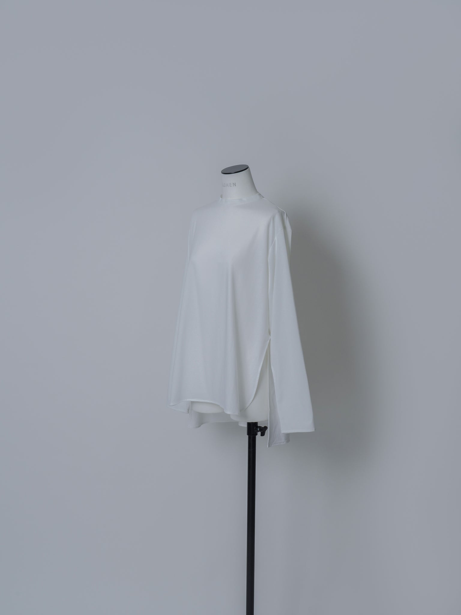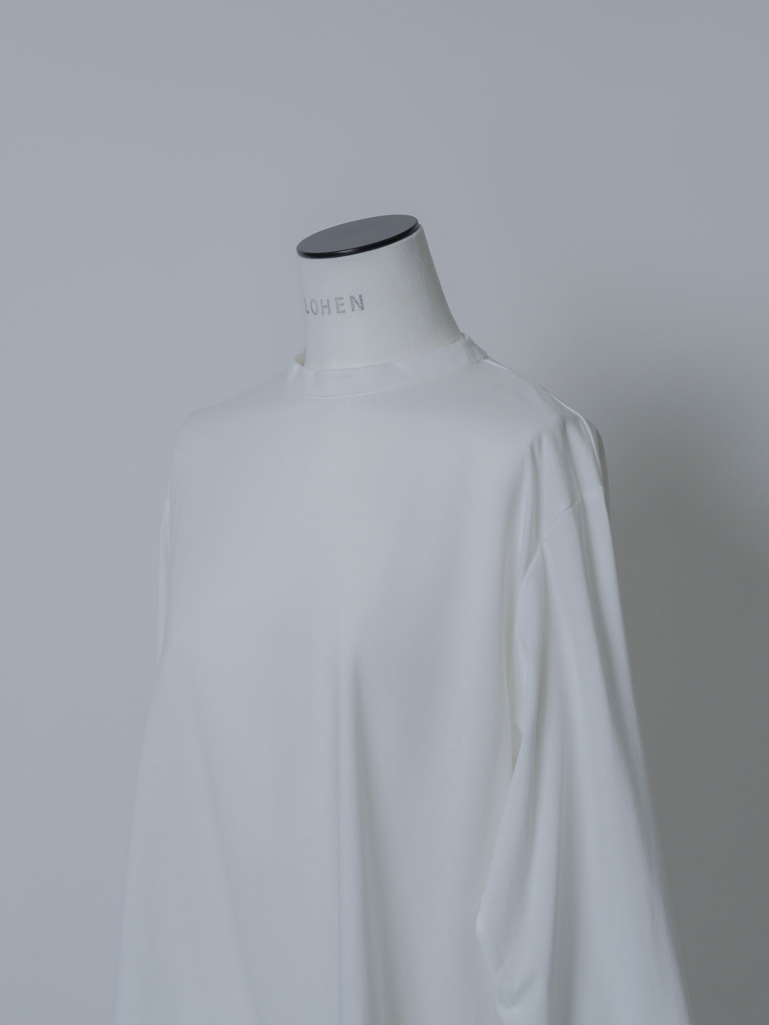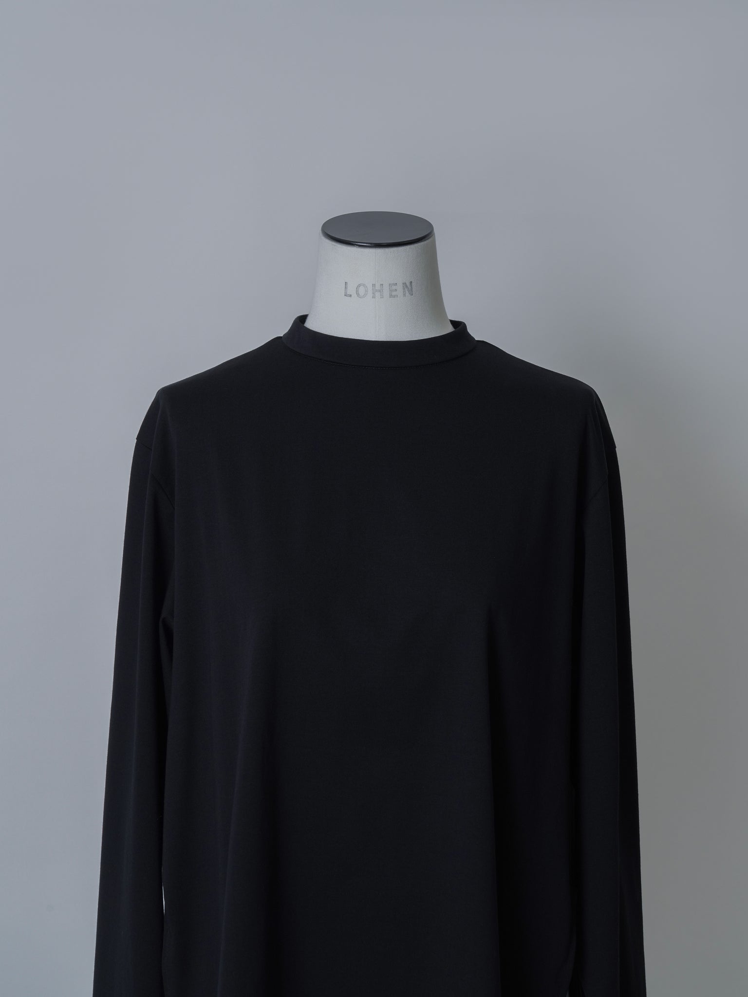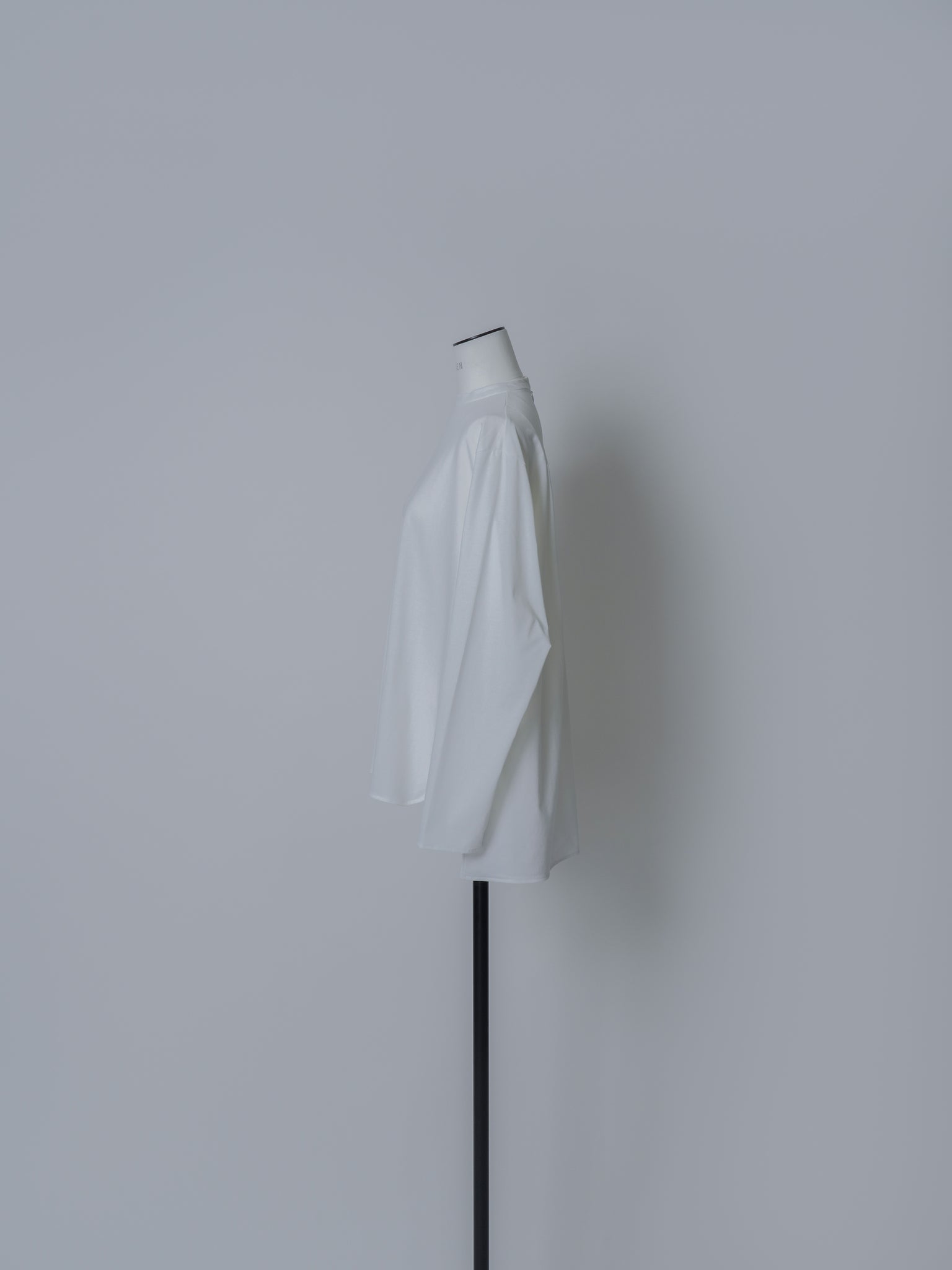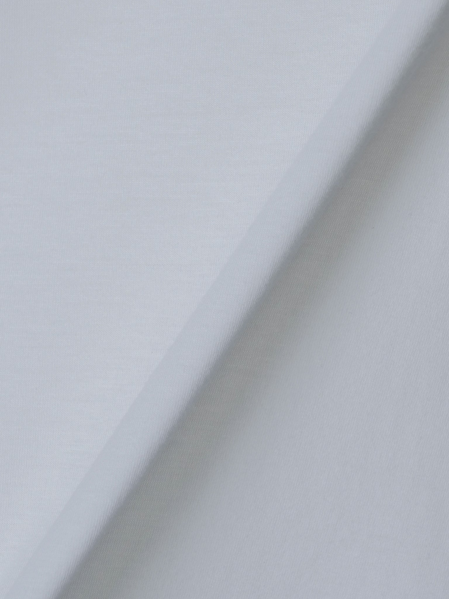 ハイゲージかつプレーティングで編み立てることで透けにくく、適度なハリ感とストレッチ性を持たせた天竺です。さらに、特殊加工を施し毛羽を抑えることで、ナチュラルな光沢感のある滑らかな風合いに仕上げています。